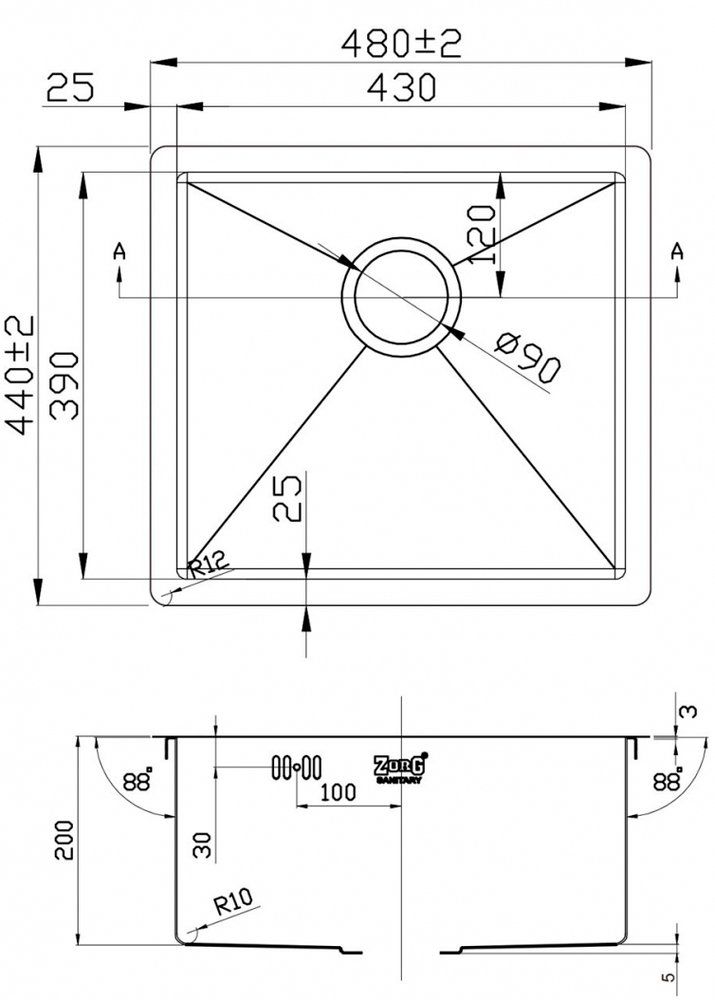 Мойка кухонная Zorg SZR-4844: чаша мойки выполнена из высококачественной легированной нержавеющей стали высококачественной нержавеющей стали с последующей специальной PVD-обработкой в цвет бронза. Данная модель прочная, устойчивая к царапинам, способна выдерживать высокие температуры. Особенности: толщина стали 1,2 мм; шумоизоляционное покрытие и накладки на обратной стороне. Габаритные размеры мойки: 48х44х20 см. Форма: прямоугольная, цвет мойки -бронза.