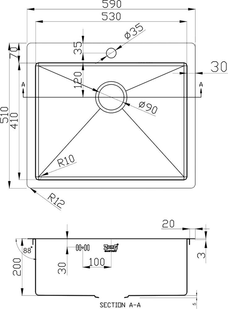 Мойка кухонная Zorg : чаша мойки выполнена из высококачественной легированной нержавеющей стали с последующей специальной PVD-обработкой в цвете сталь. Данная модель прочная, устойчивая к царапинам, способна выдерживать высокие температуры. Функционально дополнит интерьер кухни. Конструкция призвана заметно облегчить привычные дела – от мытья посуды до разморозки продуктов. Сверху нанесено покрытие, которое придает глубокий цвет и обеспечивает защиту от преждевременного истирания. Толщина нержавеющей стали 1,5–3 мм и шумоподавляющие накладки делают модель практически бесшумной.
