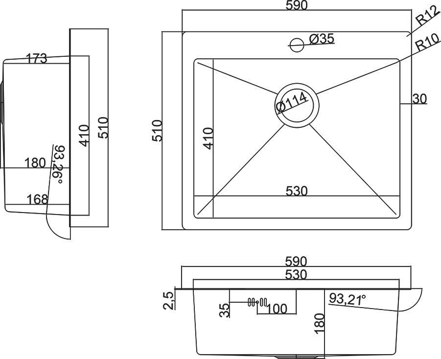 • Отверстия под смеситель: