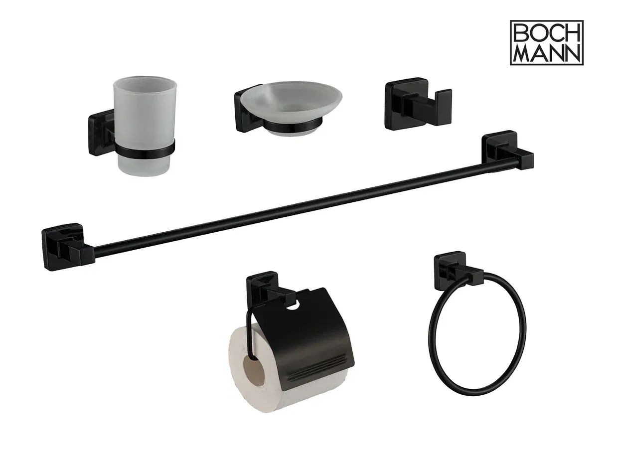 Ванная комната является одним из любимых и часто посещаемых мест человека. Мы проводим там больше 14 тысяч часов за всю жизнь, поэтому она обязательно должна быть не только уютной, но и эргономичной. Ни одна ванная комната не может обойтись без аксессуаров - незаметных на первый взгляд, но совершенно необходимых вещей, которые делают жизнь нашу намного комфортней. Они не только практичны, но и создают общую атмосферу ванной комнаты, придают ей индивидуальность и шарм.Дизайнерские аксессуары BOCH MANN стилистически завершают образ ванной комнаты, создавая целостную и продуманную концепцию. Их функциональный дизайн позволяет дополнить практически любой интерьер, а широкий ассортимент предоставляет свободу выбора. Так как срок службы аксессуаров для ванных и туалетных комнат напрямую зависит от материала, из которого они изготовлены, в производстве аксессуаров BOCH MANN используются только материалы самого высокого качества – нержавеющая сталь и закалённое стекло. Изделия из нержавеющей стали — рекордсмены по сроку службы, сохранению отличного внешнего вида и высоких эксплуатационных характеристик. Надежность конструкций аксессуаров BOCH MANN, профессиональное крепление и прочность покрытия позволяют использовать изделия не только в домашних условиях, но также и в общественных местах, включая отели и рестораны. Безупречность исполнения каждой детали, точность даже в мелочах — это признаки истинной элитарности бренда BOCH MANN.Многие дизайнеры советуют не приобретать аксессуары по отдельности, а отдавать предпочтения уже готовым наборам. Все потому, что при отдельной покупке вы потратите больше денег и можете купить не подходящие друг к другу по дизайну и внешним характеристикам предметы. Выбирая уже готовый набор, вы способны выдержать единую стилистику вашей ванной комнаты. Набор аксессуаров для ванной является не только практичным решением, но и прекрасным элементом декора, с которым ваша ванная комната станет местом, где вы сможете расслабиться, насладиться уютом и эстетикой. Наборы аксессуаров Bochmann для ванной не только помогут сделать вашу ванную максимально комфортной и функциональной, но и станут элегантным дополнением к интерьеру.Преимущества:- эстетический внешний вид;- высококачественные материалы – нержавеющая сталь и закаленное стекло;- тип крепления – скрытый, отличающийся повышенной надёжностью;- два варианта цветов – классический черный и универсальный хром;- чёткие формы каждой детали;- качество, проверенное годами.Состав набора: