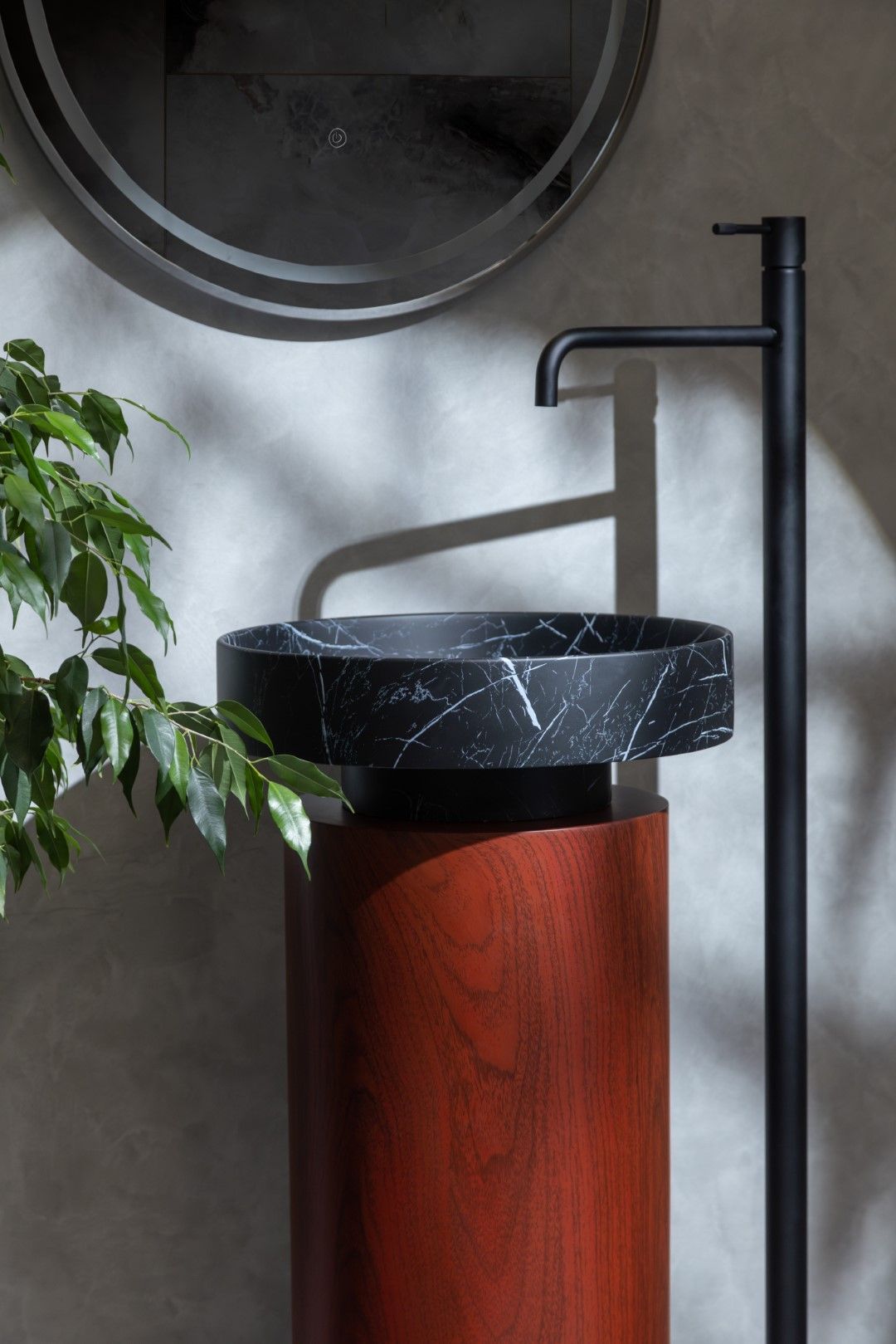 Накладная раковина с пьедесталом золото Armadi Art Sole Corian 801-NM+801-Base-Rwood Nero Marquina/красное дерево купить