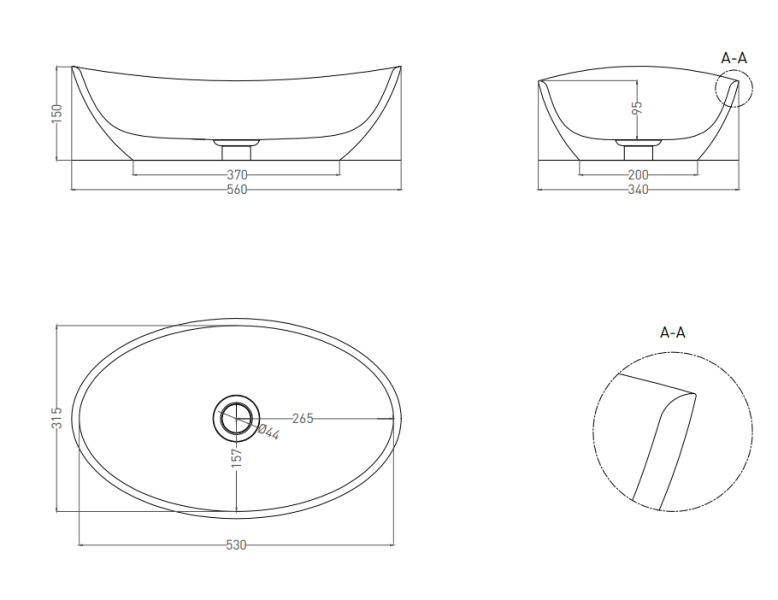 Накладная раковина Salini Noemi S-Sense 1101103GRH 56см RAL снаружи