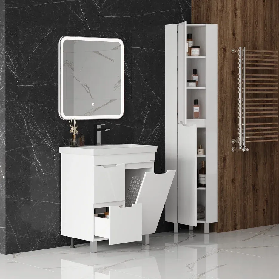 Напольная тумба для ванной комнаты Onika Айленд 70 сочетает в себе стильный минималистичный дизайн, белую глянцевую поверхность и высочайшее качество исполнения.