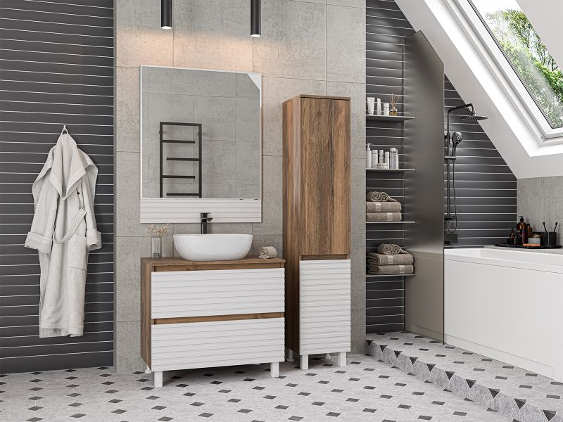 Напольная тумба под раковину – это не просто элемент мебели, но настоящее произведение искусства, которое сочетает в себе функциональность и изысканный дизайн. Изготовленная из высококачественных материалов, она гарантирует долговечность и устойчивость к воздействию влаги.Удобная система хранения позволяет размещать все необходимое для гигиенических процедур, а её продуманные размеры отлично вписываются даже в небольшие помещения. Стильные ручки и элегантные фасады придают тумбе особый шарм, а разнообразие цветовых решений позволит выбрать модель, соответствующую любому интерьеру – от классического до модерн.Мягкие линии и непринужденные формы делают тумбу неотъемлемой частью ванной, превращая её в любимое место для отдыха. Совершенное сочетание эстетики и практичности позволяет создать гармоничный и стильный интерьер, что делает напольную тумбу для ванной комнаты идеальным аксессуаром для любого дома.