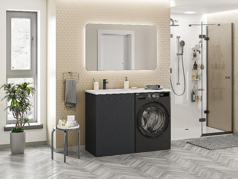 Тумба с раковиной Brevita Grafit 120 L УТ000015085 напольная под стиральную машину. Характеристики: Тумба под раковину: