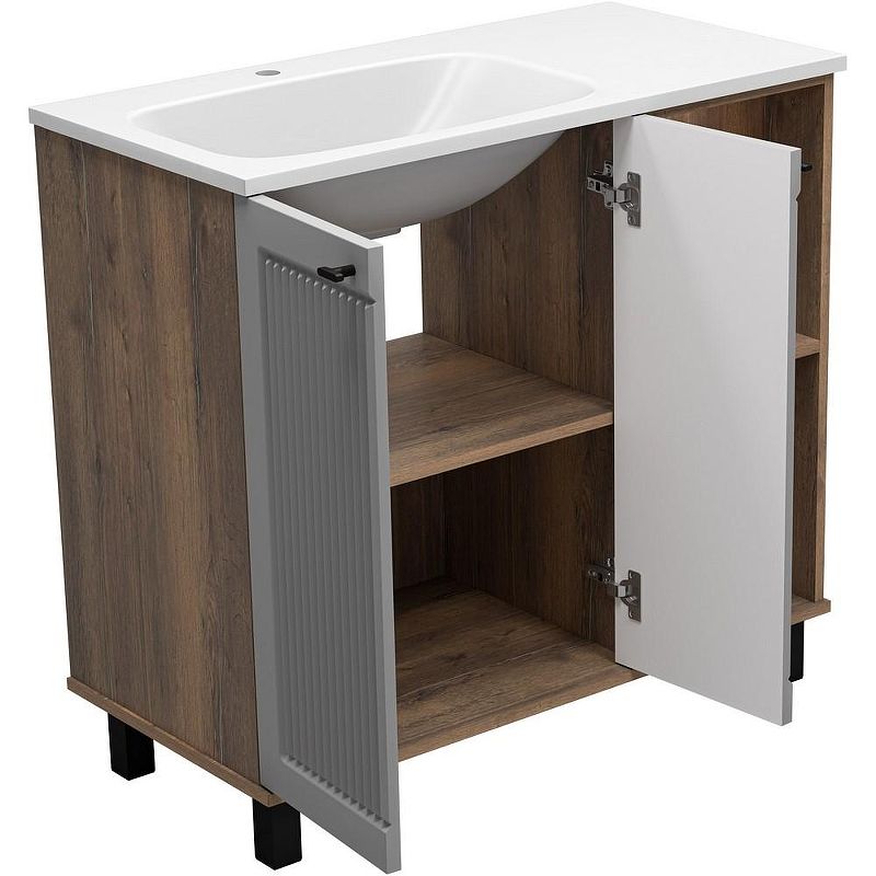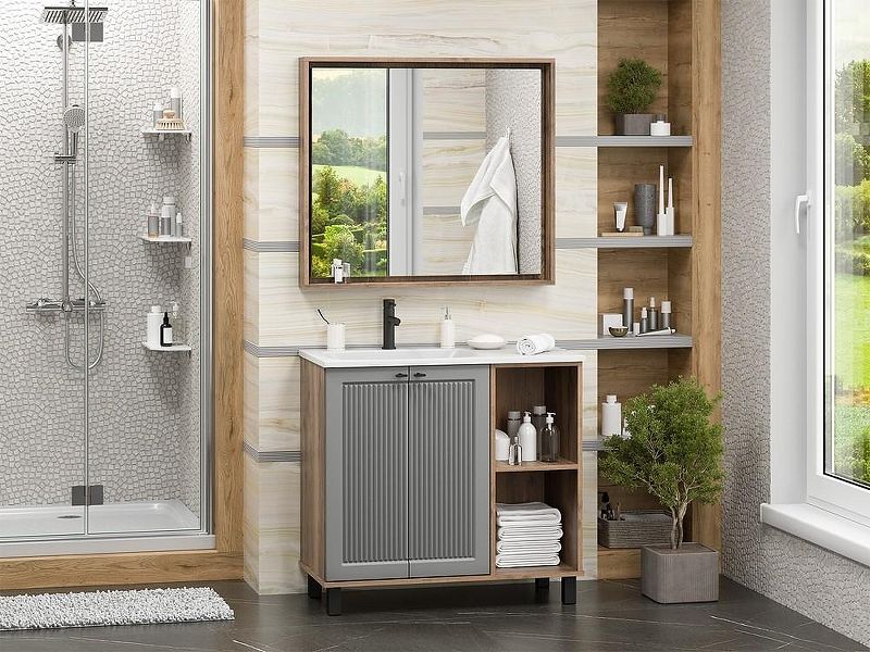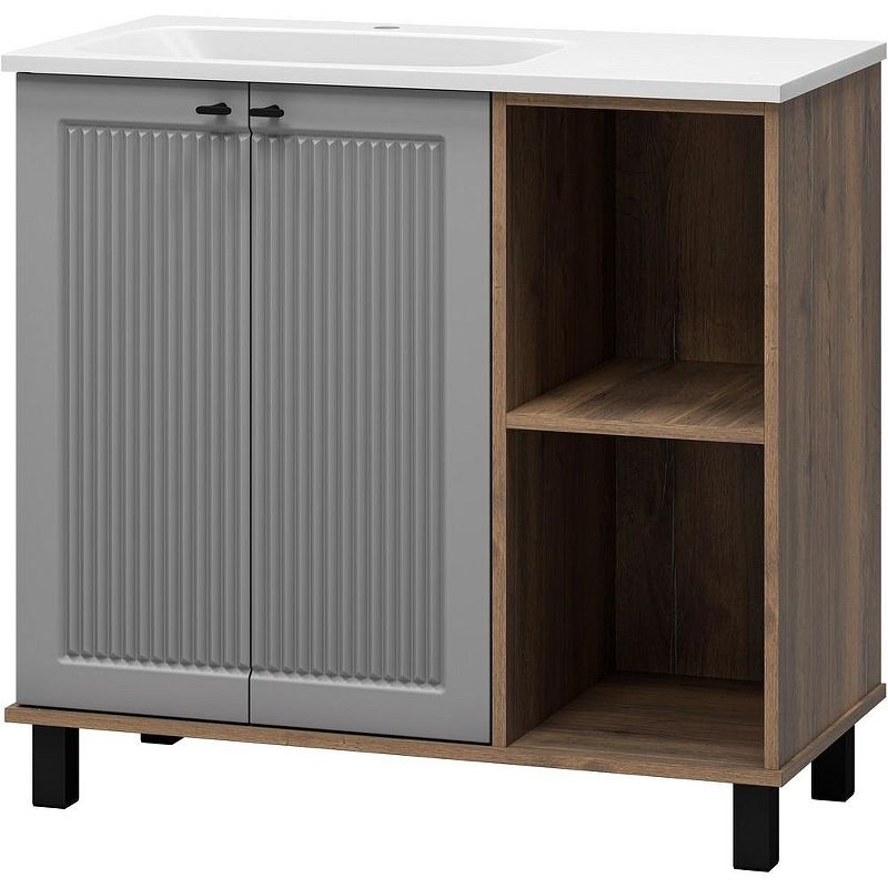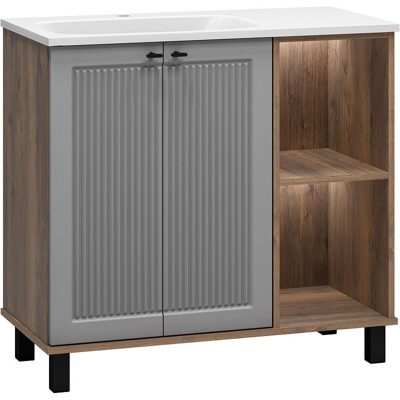 Напольная тумба под раковину Brevita Lumus 90 L УТ000025489 Серая матовая Дуб Галифакс олово Подробнее