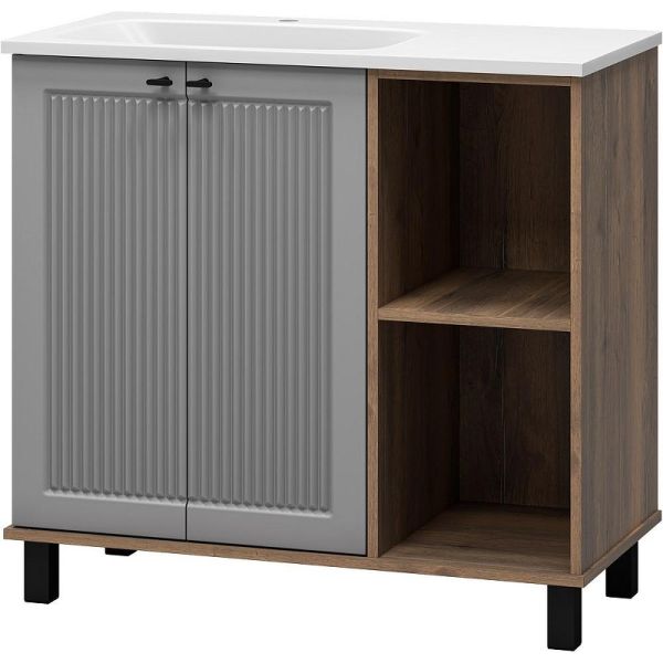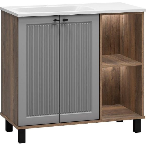 Напольная тумба под раковину Brevita Lumus 90 L УТ000025489 Серая матовая Дуб Галифакс олово купить