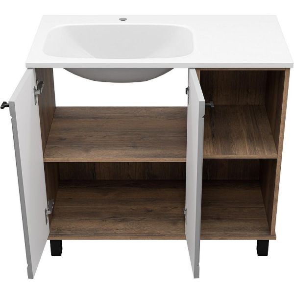 Система хранения: две распашные дверцы, открытые полки.