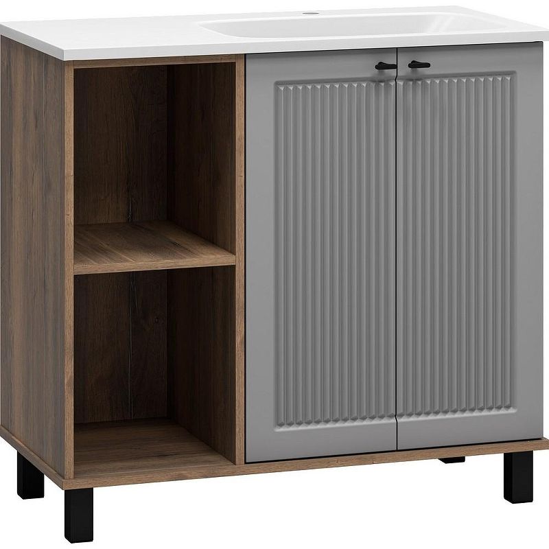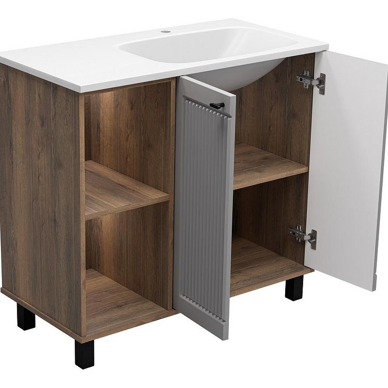 Напольная тумба под раковину Brevita Lumus 90 R УТ000025490 Серая матовая Дуб Галифакс олово Подробнее