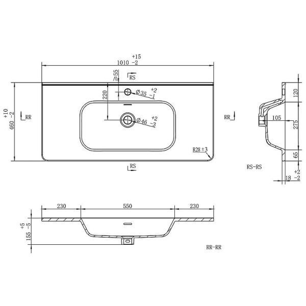 Размер (ШхВхГ): 1010х155х460 мм.