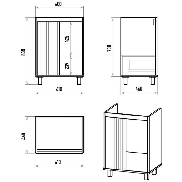 Габариты корпуса тумбы (ШхВхД): 610х838х460 мм.