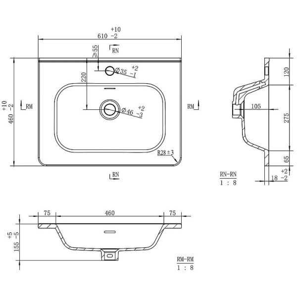 Размер (ШхВхГ): 610х155х460 мм.