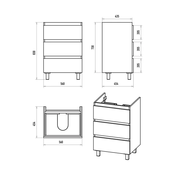 Размер мебели, мм (ш/г/в): 560x454x730