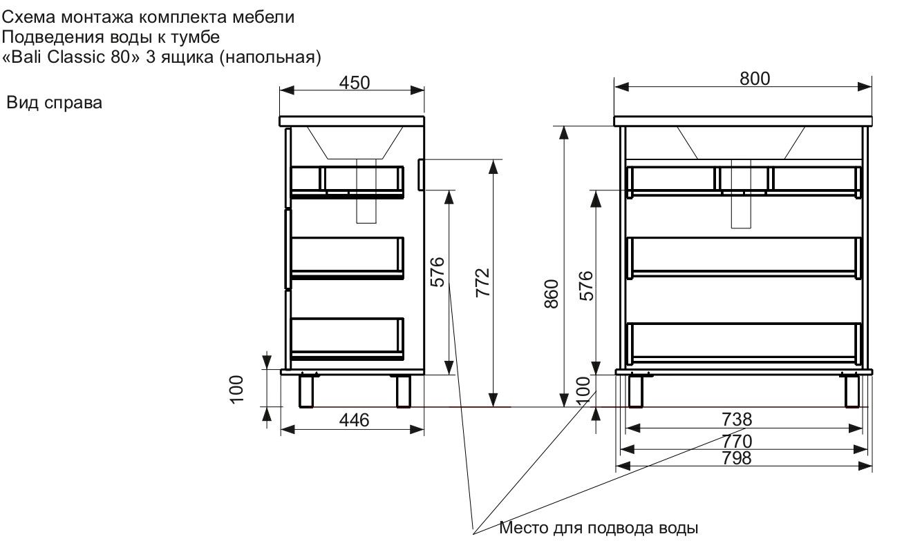 Напольная тумба под раковину Эстет Bali Classic ФР-00002231 80см три ящика белый купить