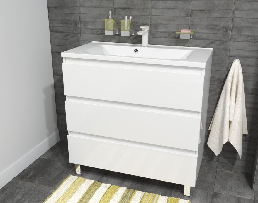 Напольная тумба под раковину Эстет Bali New ФР-00009968 90см три ящика белый купить