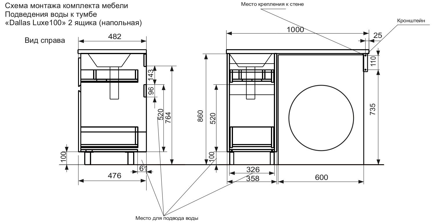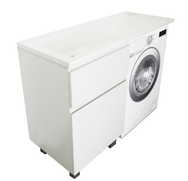 Коллекция мебели для ванной комнаты Dallas Luxe покоряет своей удивительной простой и функциональностью. Стиральная машина устанавливается под столешницей, за счет чего экономит место в ванной комнате. В тумбе имеются два ящика. Нижний ящик тумбы – широкий и вместительный – предназначен для крупных предметов, а в верхнем имеется специальная организация пространства, позволяющая хранить мелкие вещи.