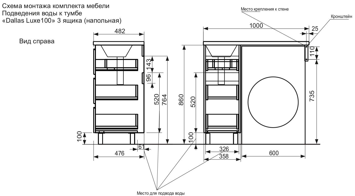 Напольная тумба под раковину Эстет Dallas Luxe ФР-00002309 Л/П 100см три ящика белый купить