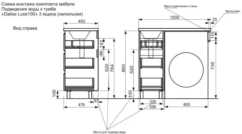 Приоритетом в выборе тумбы с раковиной является площадь ванной комнаты. Функциональная тумба с тремя ящиками решит вопрос для большинства покупателей. Стиральная машина устанавливается под столешницей. Три ящика позволят распределить как крупные, так и мелкие вещи.