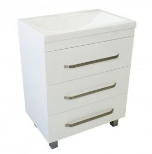 Серия Monaco выполнена в стиле хай-тек. Минимализма и четкости форм в ванной комнате поможет добиться именно этот стиль. Линии простые, строгие, жесткие. Тумба имеет три выдвижных ящика и удобные хромированные ручки.