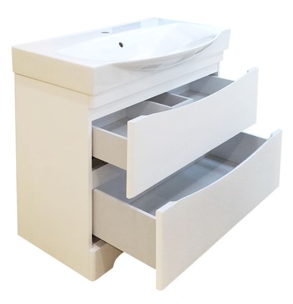 Не имея внешних украшений тумба Элвис 1050 очень хорошо впишется в уточненный и лаконичный стиль больших ванных комнат в современном стиле. Белый классический цвет гладких поверхностей и вырезные проемы под ручки – особенности модели.Мебель оборудована двумя ящиками, в которых удобно хранить предметы. Мягкость открытия и закрытия ящиков обеспечивают доводчики BOYARD.Раковина Элвис 1050 обеспечивает удобство использования за счёт своих размеров и широких бортиков. Ее резные контуры подчеркивают лаконичность тумбы и в комплексе создают впечатление практичности, удобства и добротности. Корпус и фасады тумбы производятся из МДФ-листа — качественного, практичного материала. Поверхности покрываются долговечной, устойчивой к износу эмалью. Раковина выполнена из высококачественного фаянса устойчивого к изменению цвета.