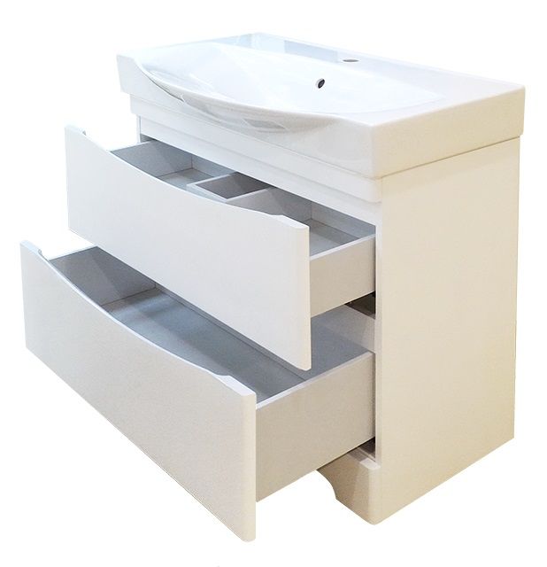 Не имея внешних украшений тумба Элвис 85 очень хорошо впишется в уточненный и лаконичный стиль больших ванных комнат в современном стиле. Белый классический цвет гладких поверхностей и вырезные проемы под ручки – особенности модели.Мебель оборудована двумя ящиками, в которых удобно хранить предметы. Мягкость открытия и закрытия ящиков обеспечивают доводчики BOYARD.Раковина Элвис 85 обеспечивает удобство использования за счёт своих размеров и широких бортиков. Ее резные контуры подчеркивают лаконичность тумбы и в комплексе создают впечатление практичности, удобства и добротности. Корпус и фасады тумбы производятся из МДФ-листа — качественного, практичного материала. Поверхности покрываются долговечной, устойчивой к износу эмалью. Раковина выполнена из высококачественного фаянса устойчивого к изменению цвета.