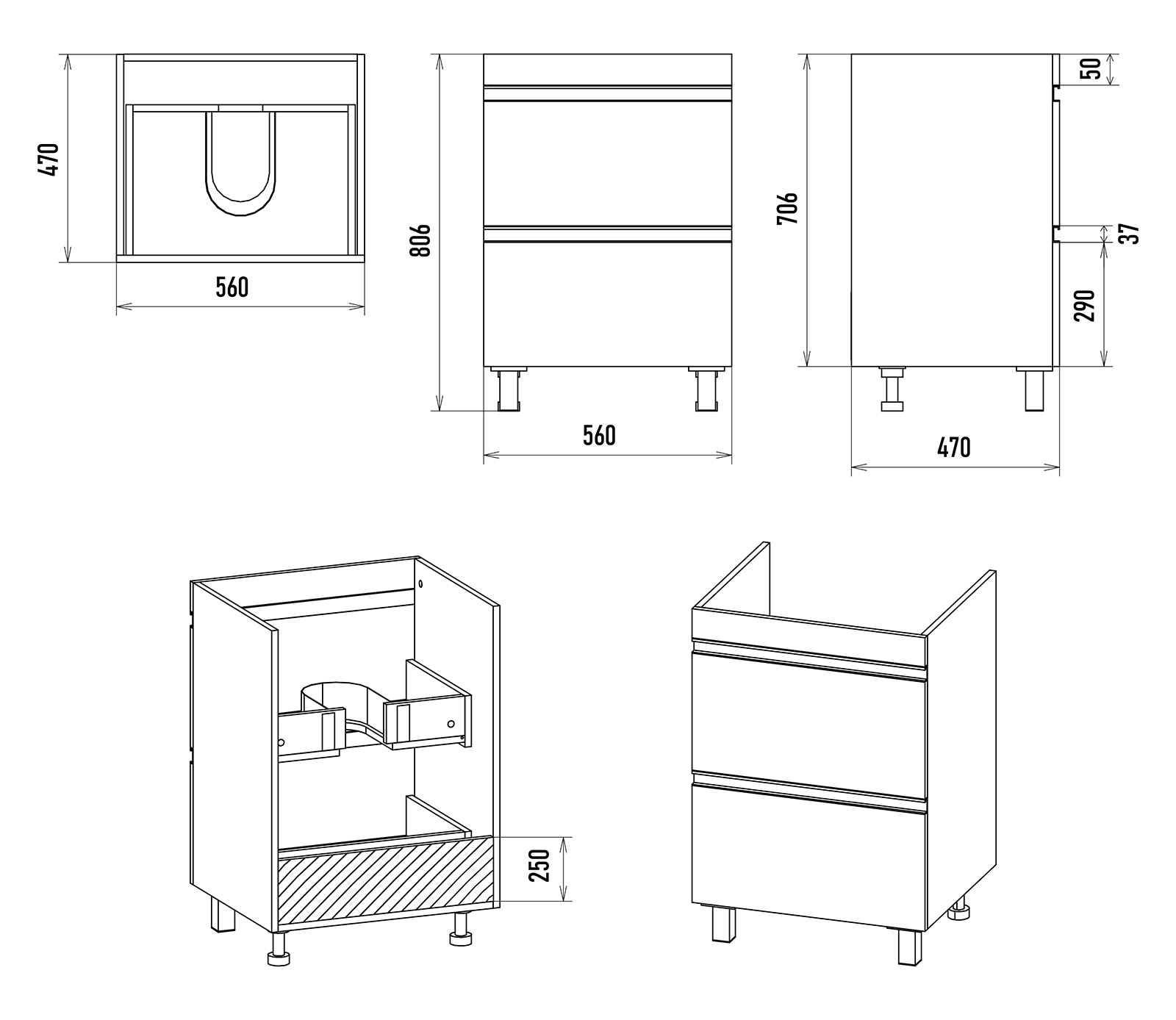 Размер мебели, мм (ШxГxВ)560x460x706