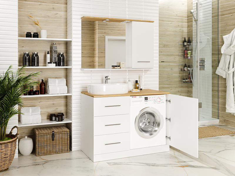 Напольная тумба под раковину Misty Респект под стиральную машину 110см левая белый/дуб Артизан