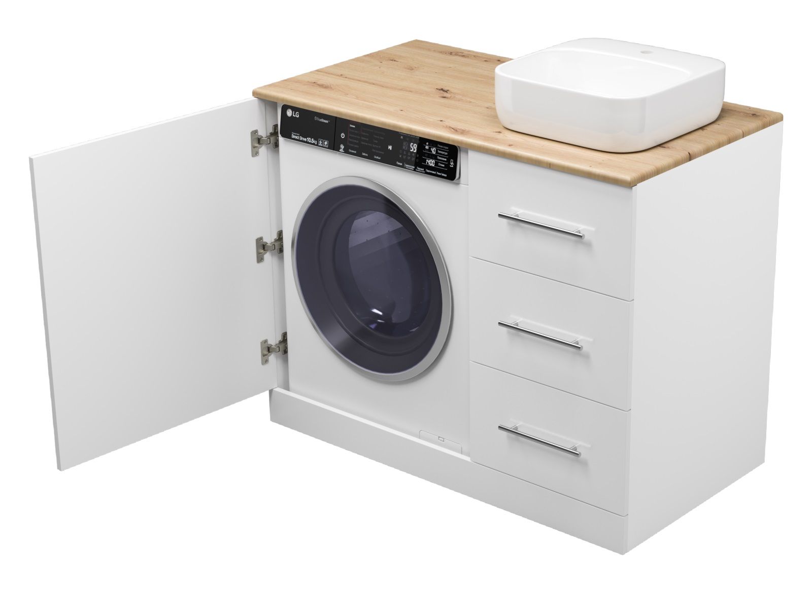 Напольная тумба под раковину Misty Респект под стиральную машину 110см правая белый/дуб Артизан
