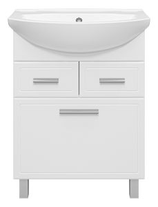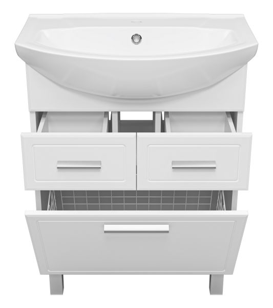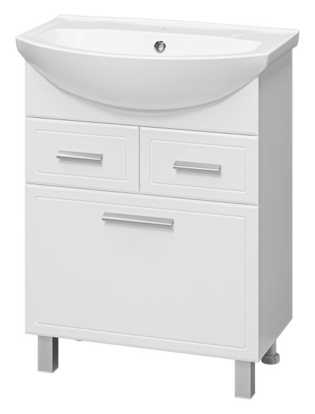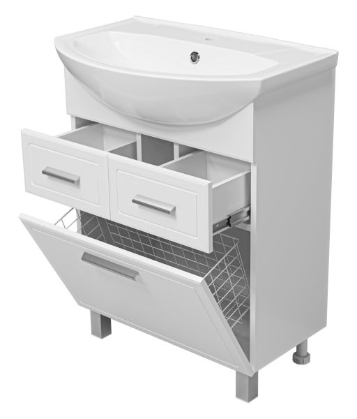 Напольная тумба под раковину Misty Стелла 65см с двумя ящиками и бельевой корзиной белый