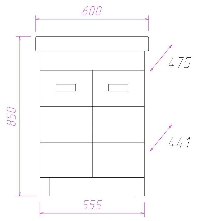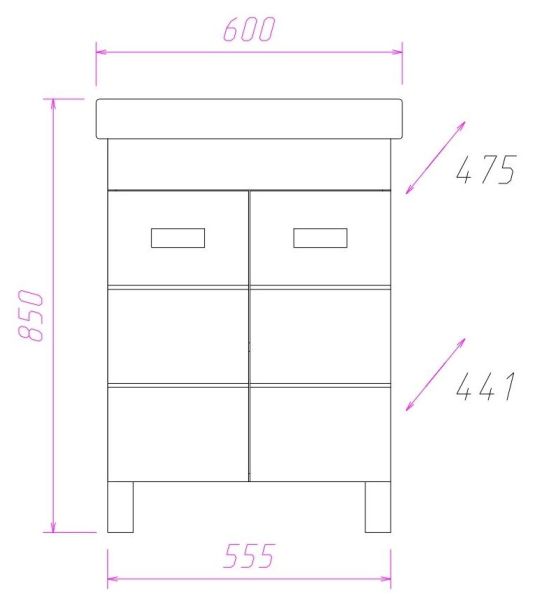 Размеры тумбы без учета раковины и ножек: 55x44x67 см.