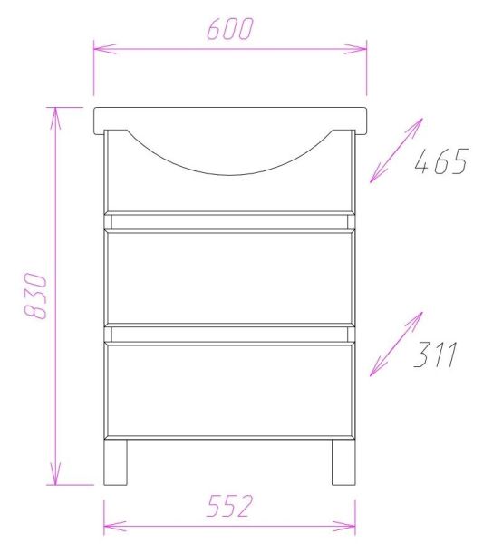Размеры тумбы без учета раковины и ножек 55x31x68 cм.
