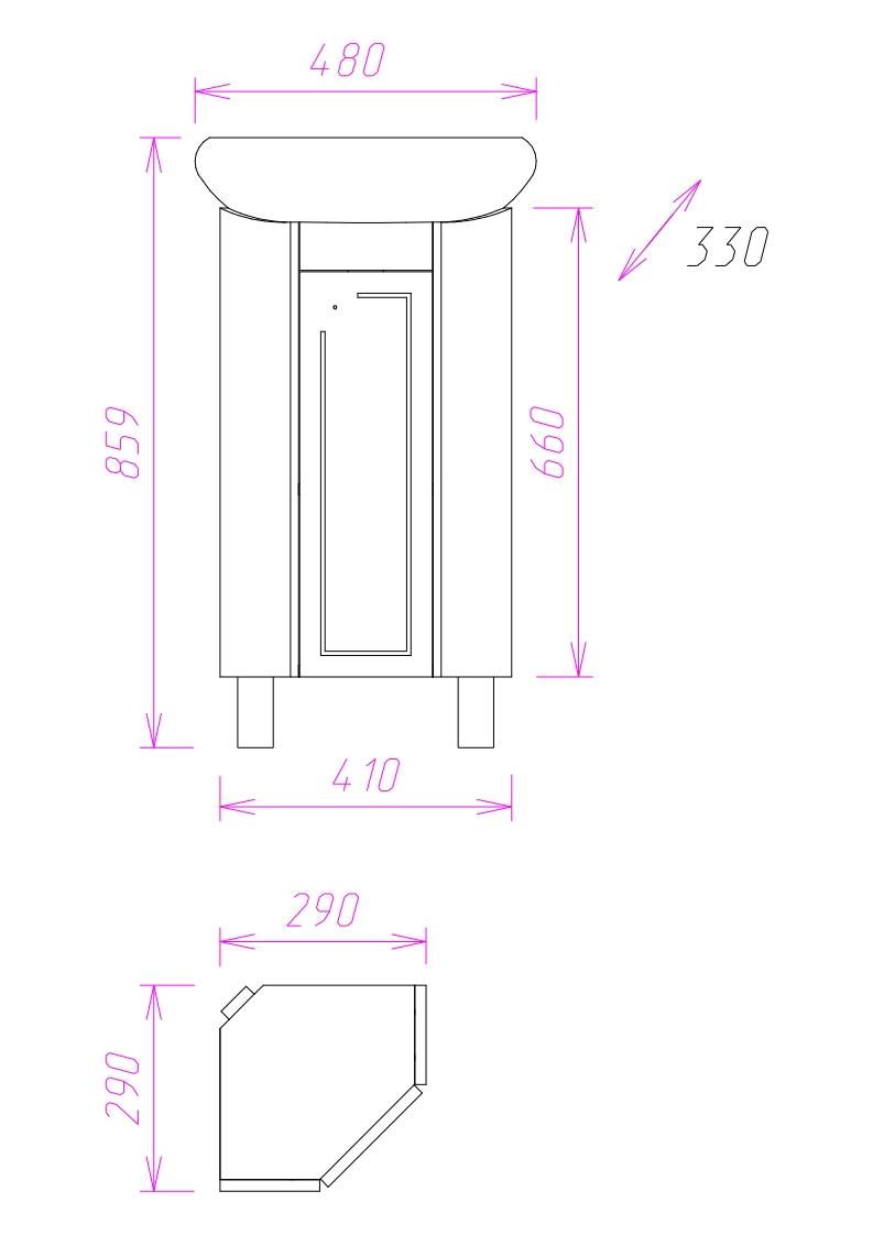 Размеры тумбы без учета раковины и ножек 41х28х66 см.