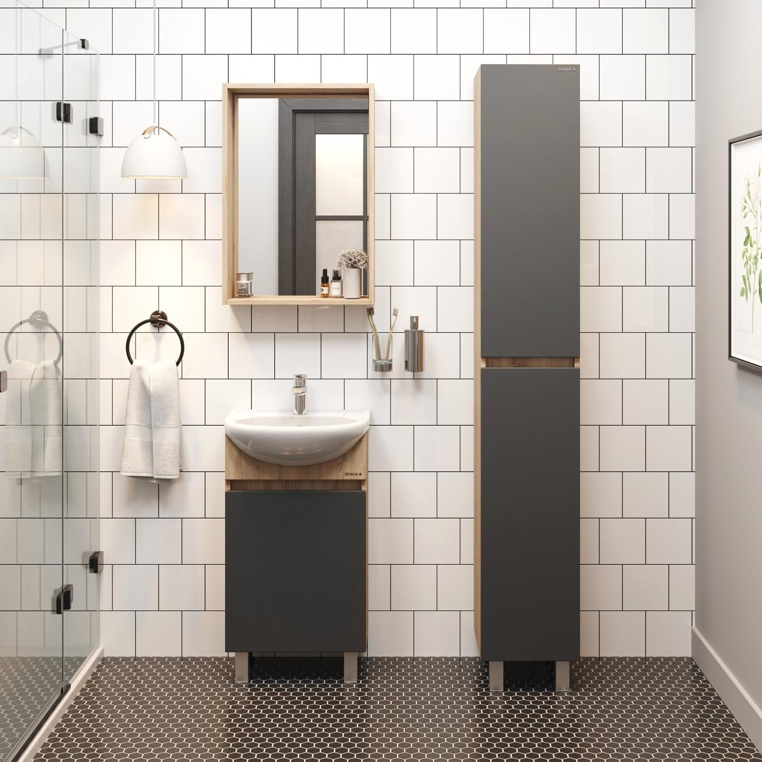 Напольная тумба под раковину Onika Милтон 104512 45см серый/дуб сонома купить