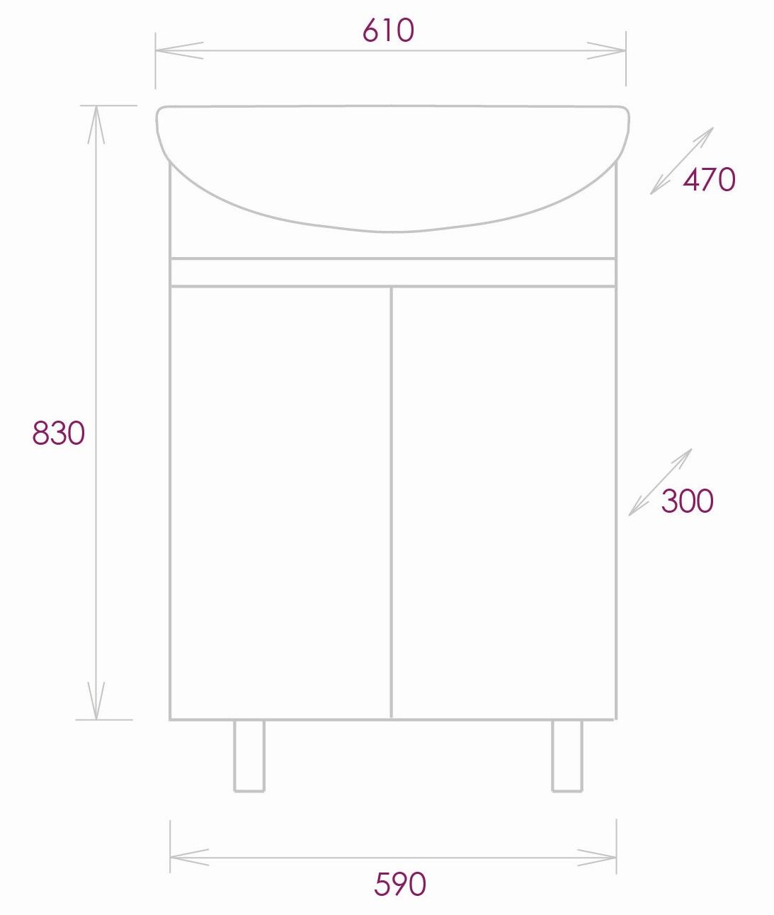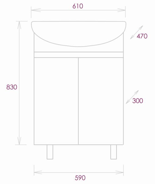 Размеры тумбы без учета раковины и ножек 59х30х68см.