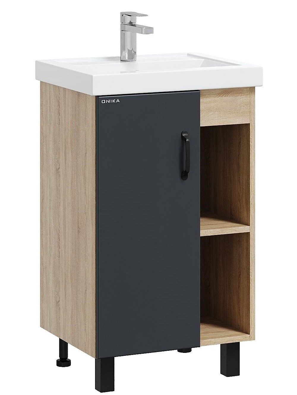 Напольная тумба под раковину Onika Тимбер 105035 50см серый матовый/дуб сонома купить