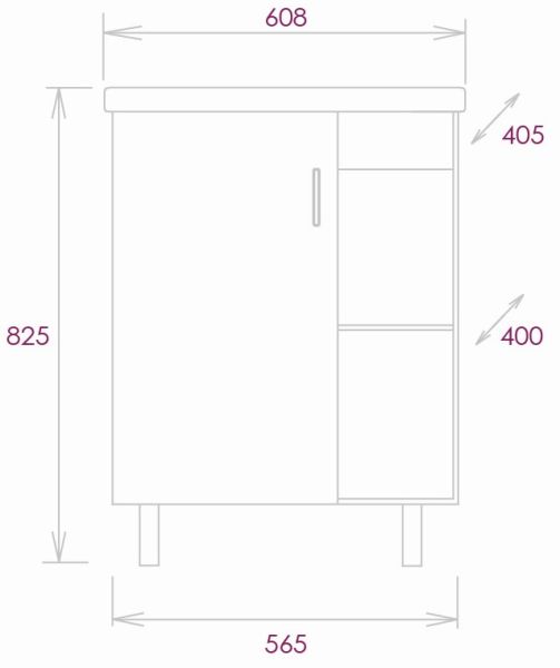 Размеры тумбы без учета раковины и ножек 56x40x68 cм.