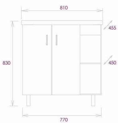 Размеры тумбы без учета раковины и ножек 77x45x68 cм.