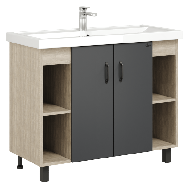 Напольная тумба под раковину Onika Тимбер 110010 100см серый матовый/дуб сонома