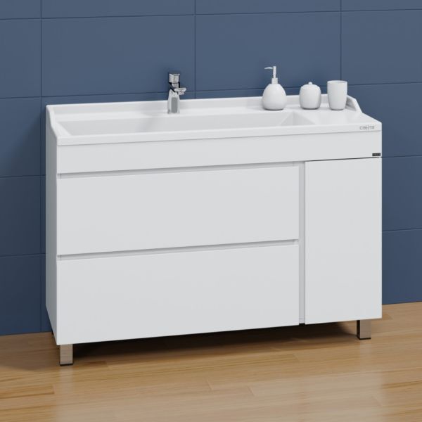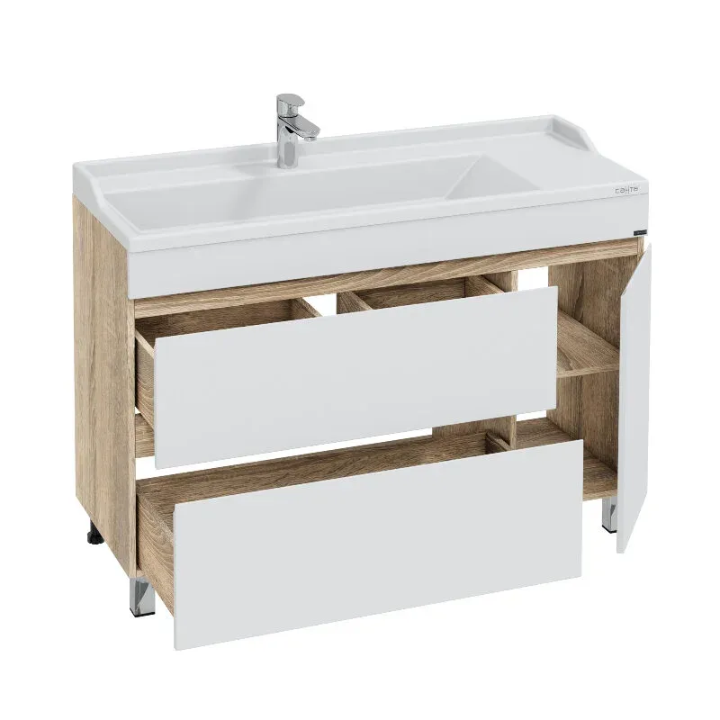 Напольная тумба Санта Марс 120 янтарная под раковину Sirius 120 с двумя ящиками и дверкой — это не только стильный, но и функциональный элемент для вашей ванной комнаты. Изготовленная из высококачественного ЛДСП, она прослужит долго, не теряя своей привлекательности. Фасады тумбы покрыты глянцевой эмалью, что придает им свежий и современный вид. Два ящика, снабженные доводчиками, обеспечат комфортное использование и удобное хранение, петли на дверке имеют петли с плавным закрыванием.