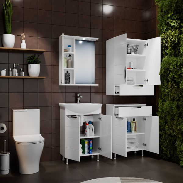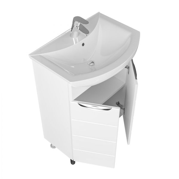 Комплектация: ручка хром - 1 шт., ножка хром - 2 шт., ножка пластик 2 шт., петли с плавным закрыванием - 2 шт. Тумба под раковину Санта Родос 45 под умывальник Уют 45 — это воплощение современного и стильного дизайна, созданное специально для вашей ванной комнаты. Она оборудована дверцей, что обеспечивает лёгкий доступ к её содержимому. Фасад тумбы выполнен из МДФ с фрезеровкой и покрыт глянцевой ПВХ-пленкой, а боковины — из белого влагостойкого ЛДСП. Внутри расположена одна полочка, что позволяет организовать пространство с максимальной функциональностью. Коллекция Родос отличается элегантностью и доступной ценой, что делает эту мебель отличным выбором для создания уютной и функциональной ванной комнаты.