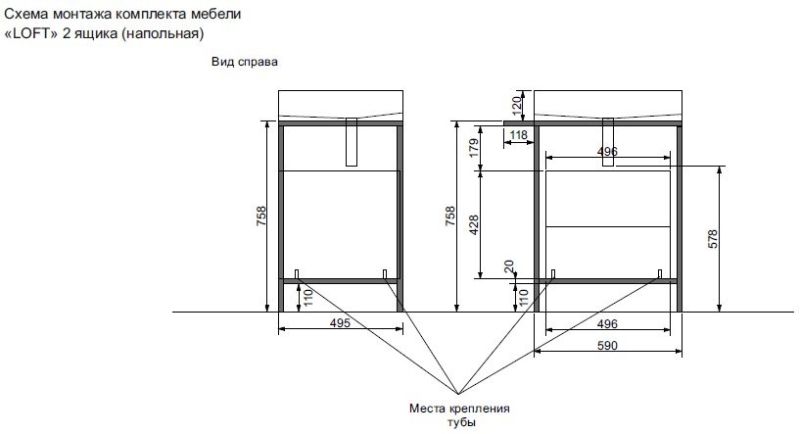 - Тумба напольная 2 ящика (ш/в/г): 708х758х495 мм