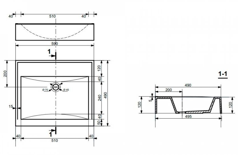 - Раковина Эстет Комфорт 59 (ш/в/г): 590x120x495 мм