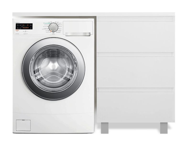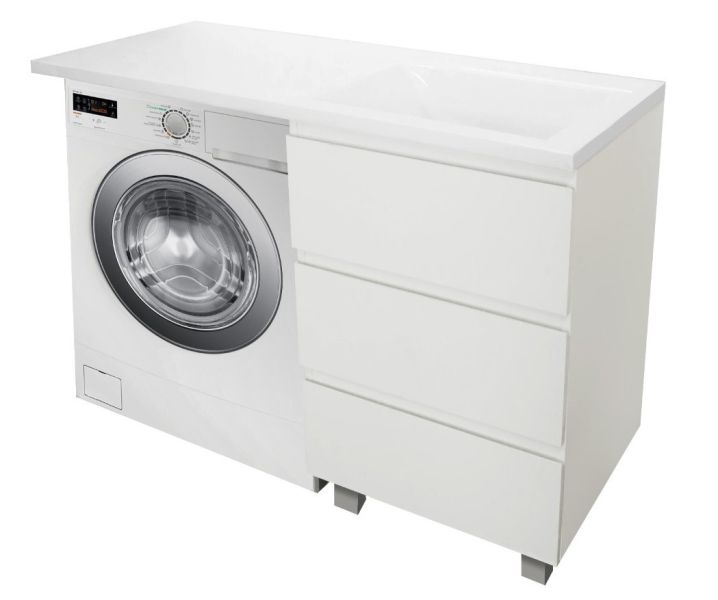 Приоритетом в выборе тумбы с раковиной является площадь ванной комнаты. Функциональная тумба с тремя ящиками решит вопрос для большинства покупателей. Тумба укомплектована раковиной из литьевого мрамора с удобной чашей, стиральная машина устанавливается под столешницей. Три ящика позволят распределить как крупные, так и мелкие вещи.