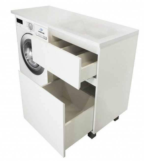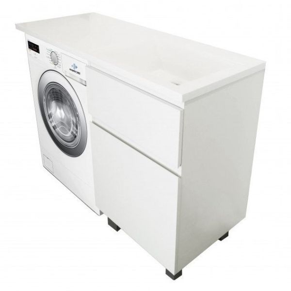 Коллекция мебели для ванной комнаты Dallas Luxe покоряет своей удивительной простой и функциональностью. Стильная лаконичная тумба, укомплектована раковиной из литьевого мрамора с удобной чашей. Стиральная машина устанавливается под столешницей, за счет чего экономит место в ванной комнате. В тумбе имеются два ящика. Нижний ящик тумбы – широкий и вместительный – предназначен для крупных предметов, а в верхнем имеется специальная организация пространства, позволяющая хранить мелкие вещи.