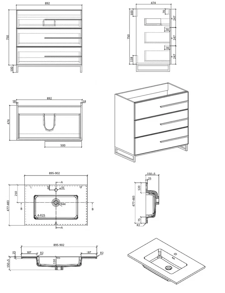 • Дизайн - минимализм, идеальное сочетание дизайна из трех! ящиков