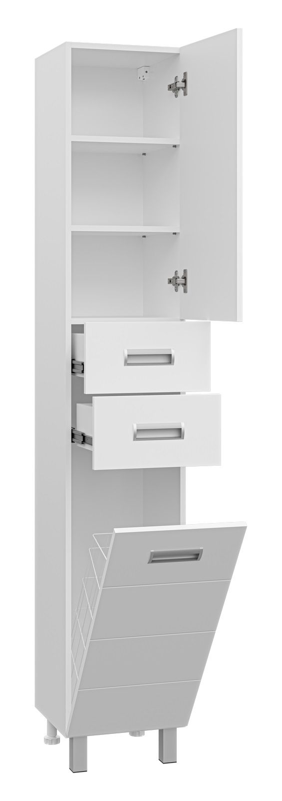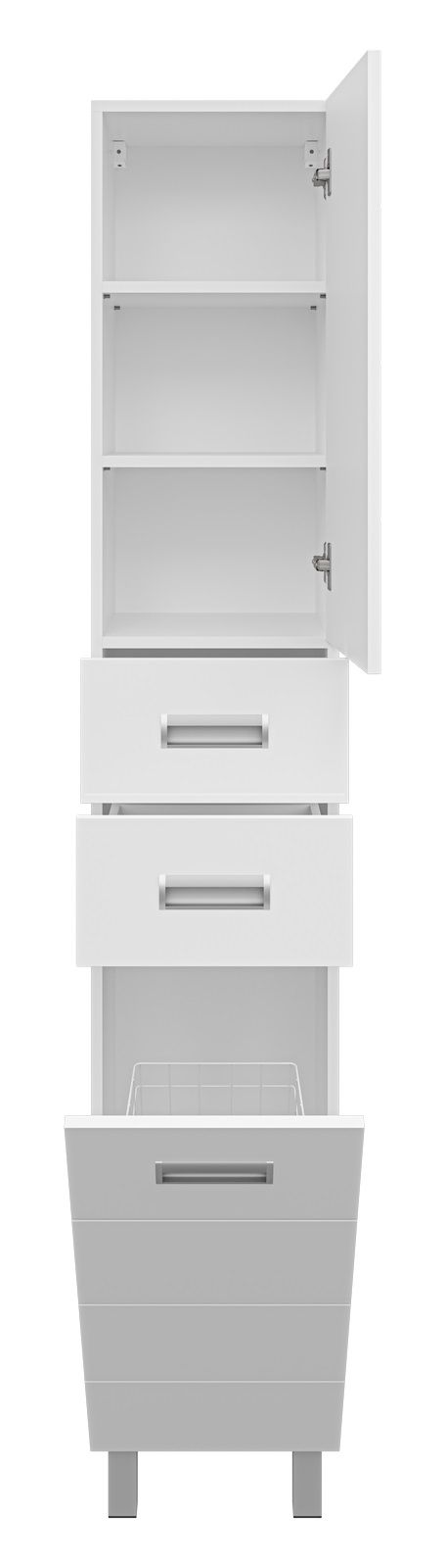 Напольный шкаф - пенал Misty Селена правый 35см с бельевой корзиной белый
