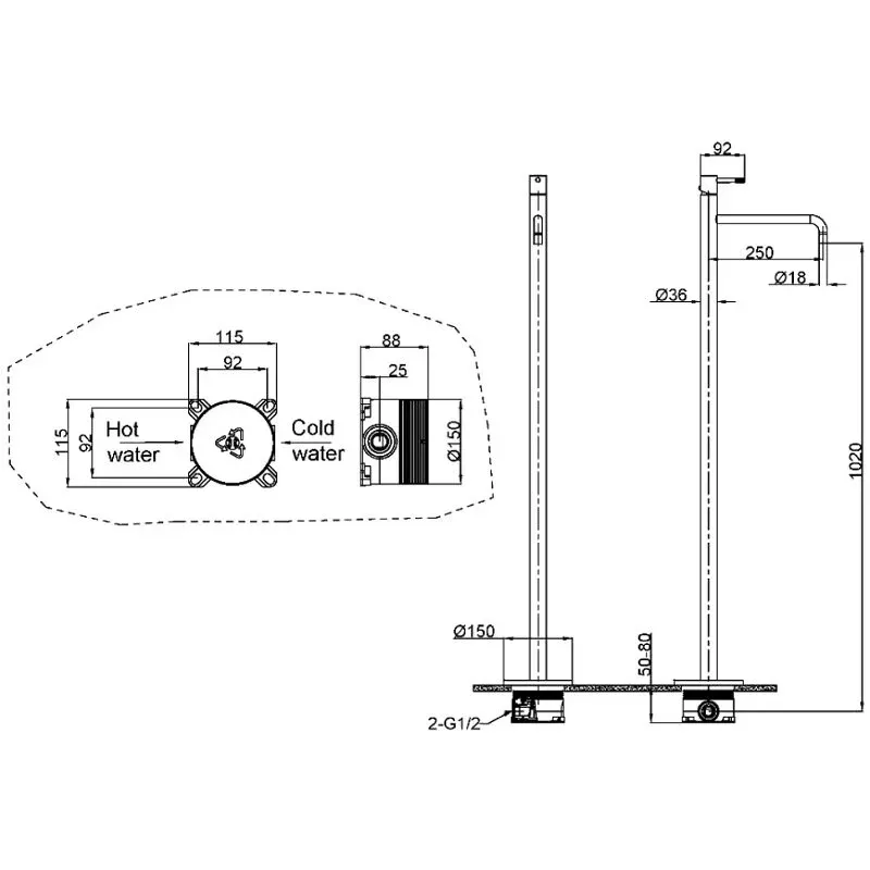 Смеситель для раковины Boheme Uno 107, напольный Смеситель для раковины, высокий Способ монта... Подробнее