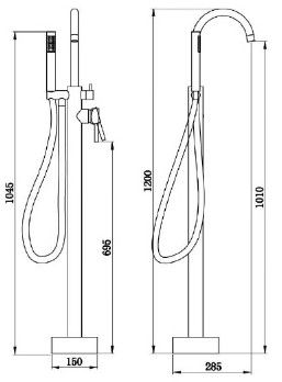 Смеситель BRAIES Matt black напольный для отдельностоящей ванны BOCH MANN BM8921Картридж SCCДушевая штанга: ЛатуньДушевой шланг 1,5 м