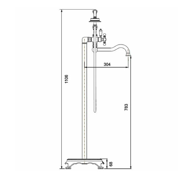 Смеситель для ванны Gappo G3089-6 напольный — двухвентильная модель в ретро-стиле с отделкой "золото", с изящными опорами и поворотным изливом. Смеситель оснащен однорежимной душевой лейкой и шлангом.