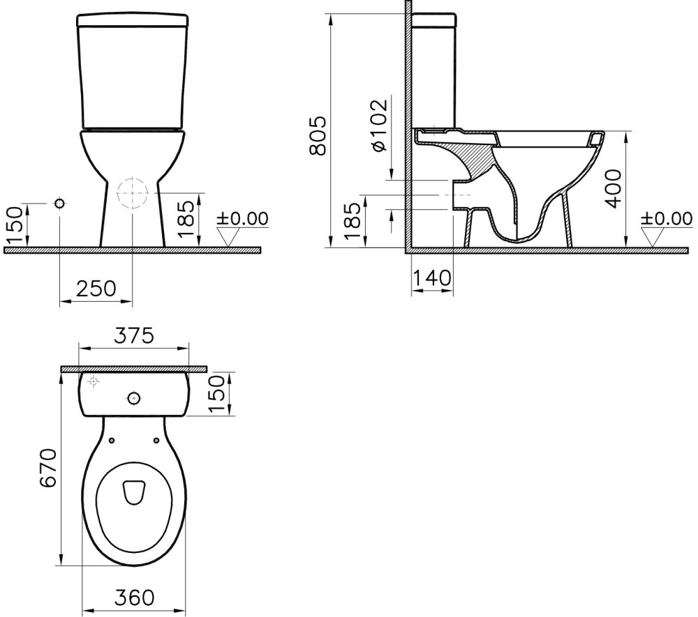 Прилегание унитаза к стене:вплотную